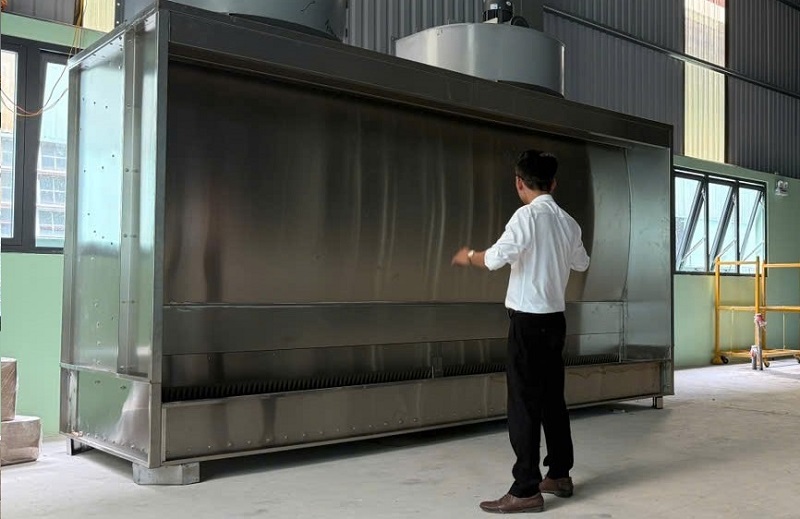 phun sơn màng nước: Là không gian kín được làm bằng kim loại tôn tráng kẽm hoặc inox, nhằm giảm